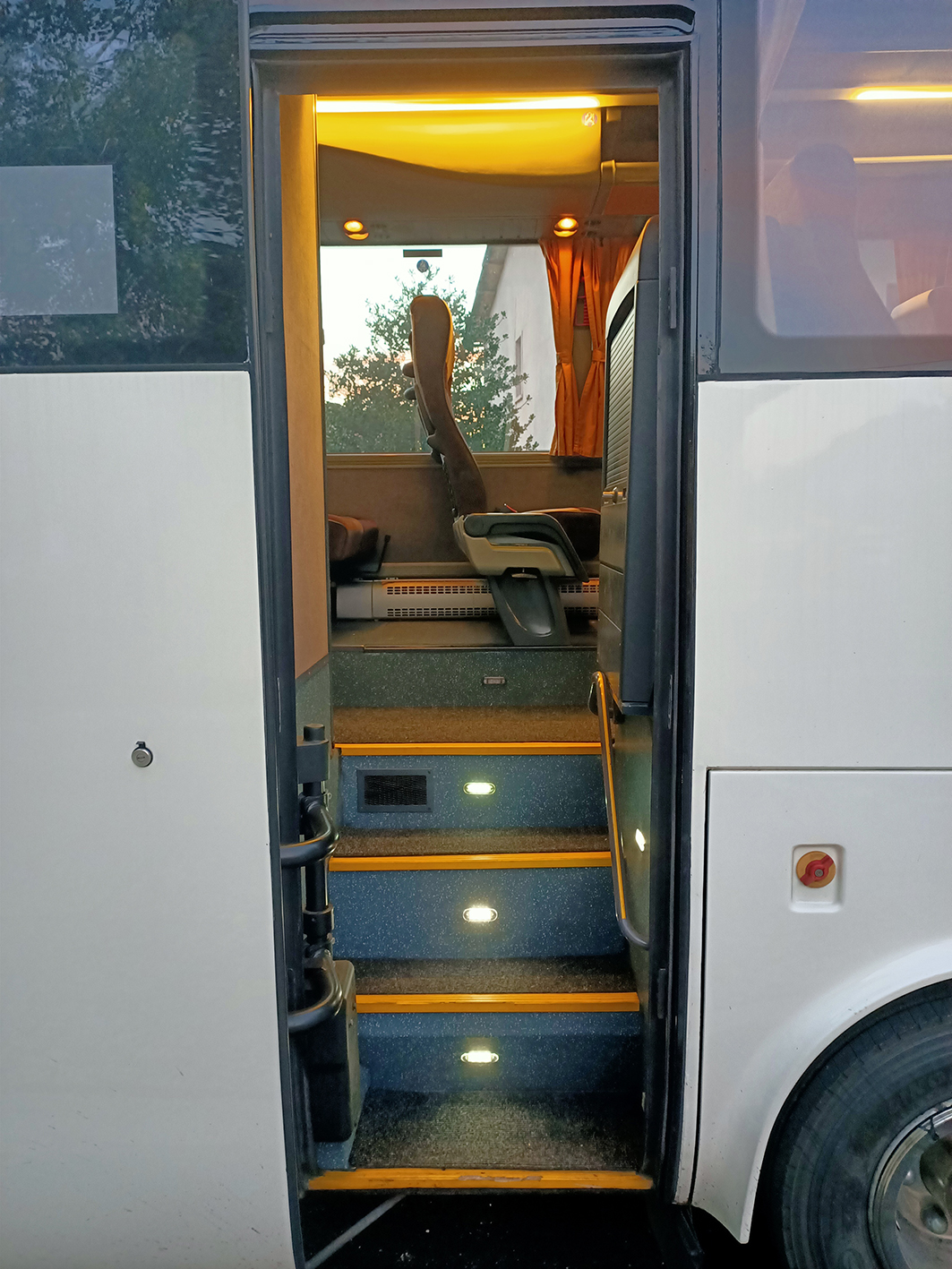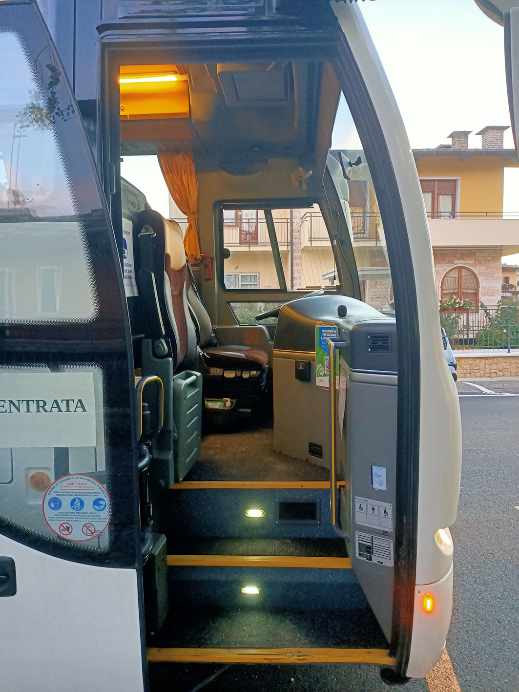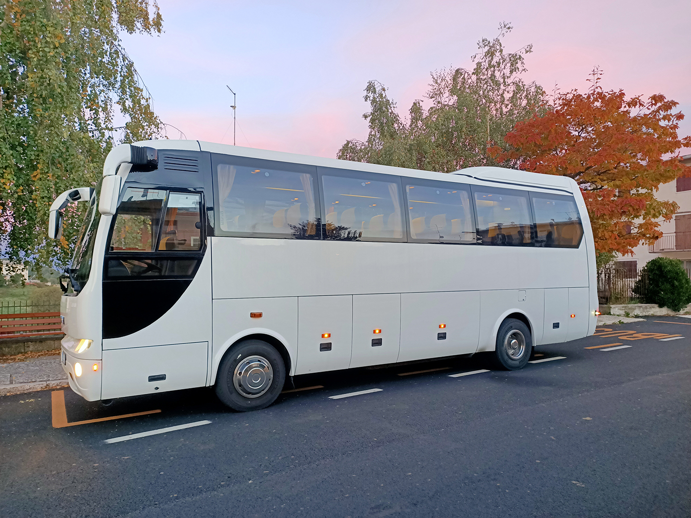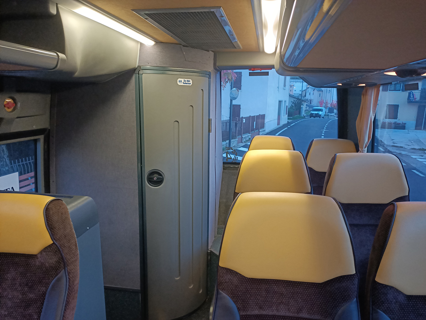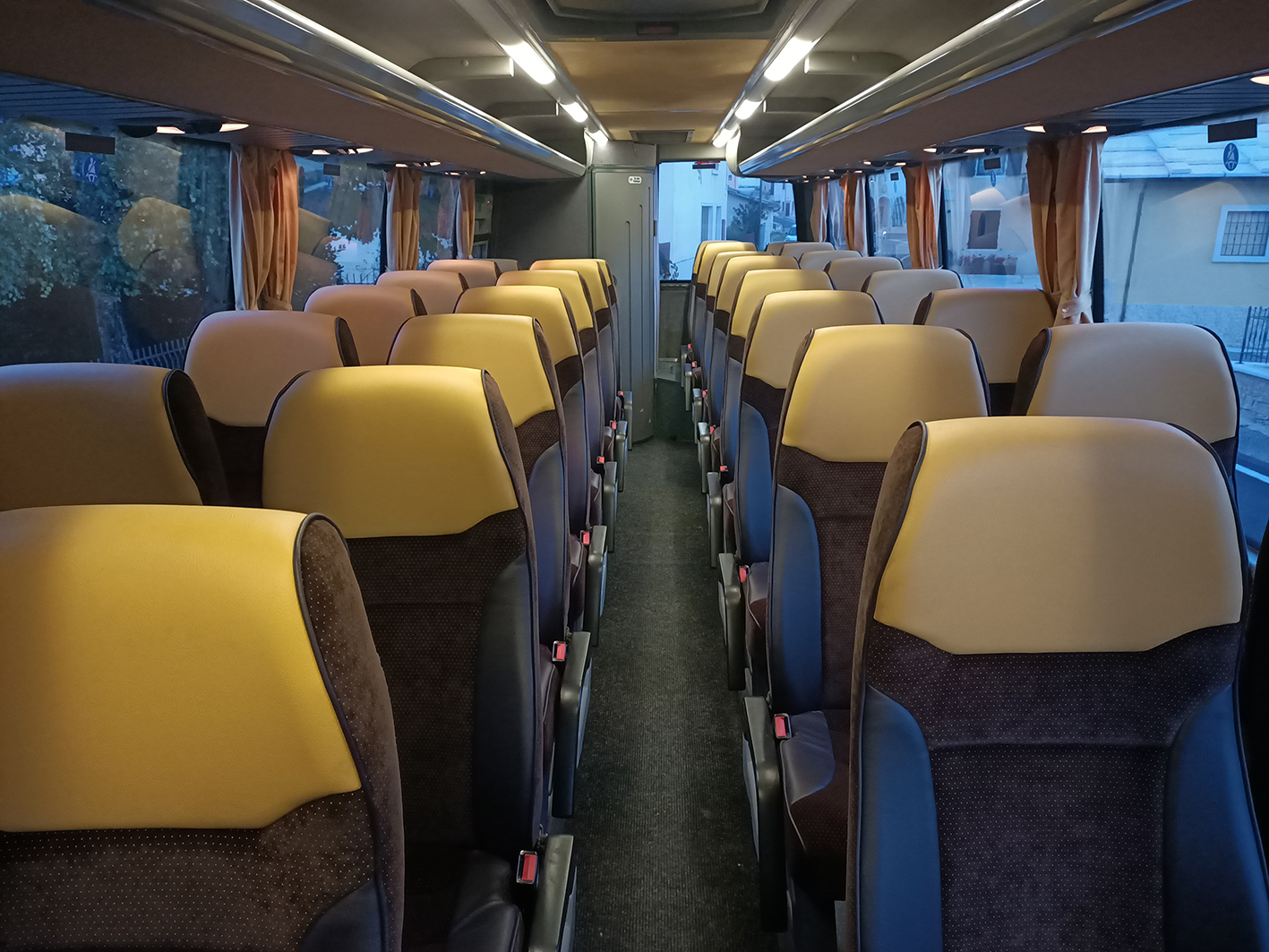 Un 9 metri per viaggiare nel comfort con Microfono, Radio, GPS, Toilette, Frigorifero, Macchina Caffè, Climatizzatore, Prese 220V, Prese USB, WiFi, Poltrone reclinabili extra larghe, luci individuali, altoparlanti ad uso individuale, tavolino per ogni passeggero.