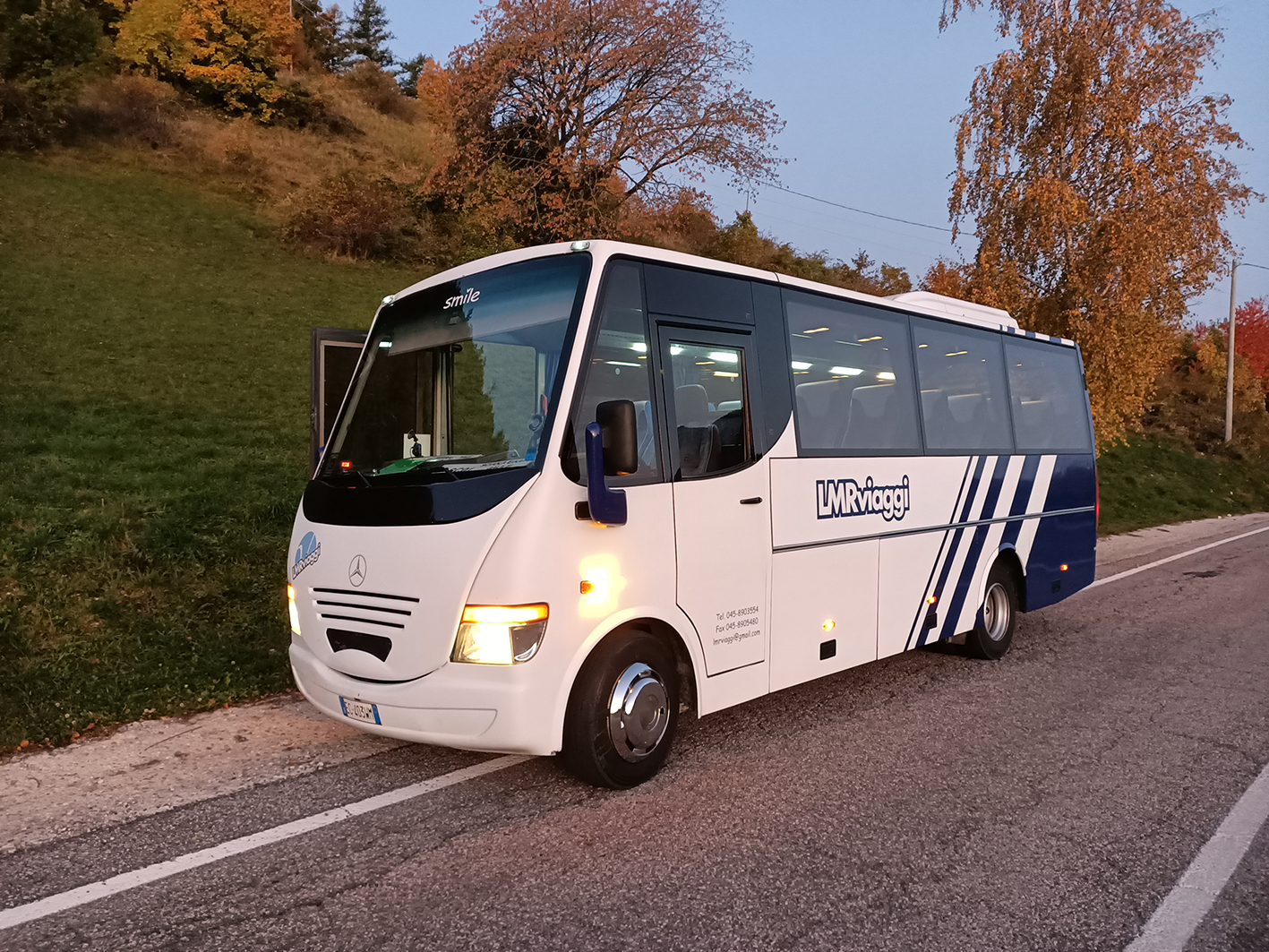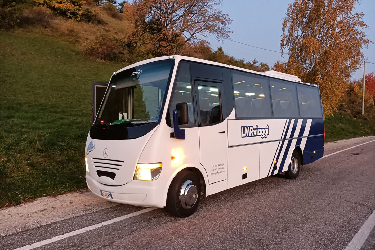 Pullman dalle dimensioni compatte ma dalla grande utilità, per servizi in zone poco agevoli senza rinunciare al comfort, dotato di ampio bagagliaio, aria condizionata, radio CD/DVD/MP3 e microfono.